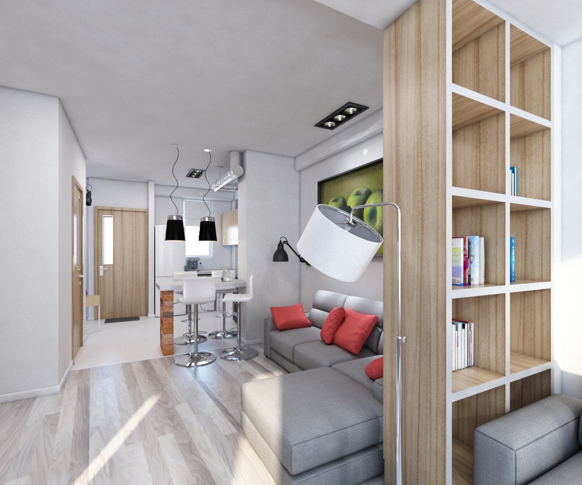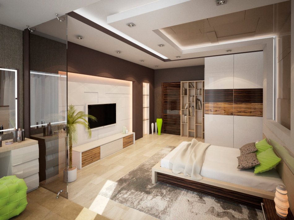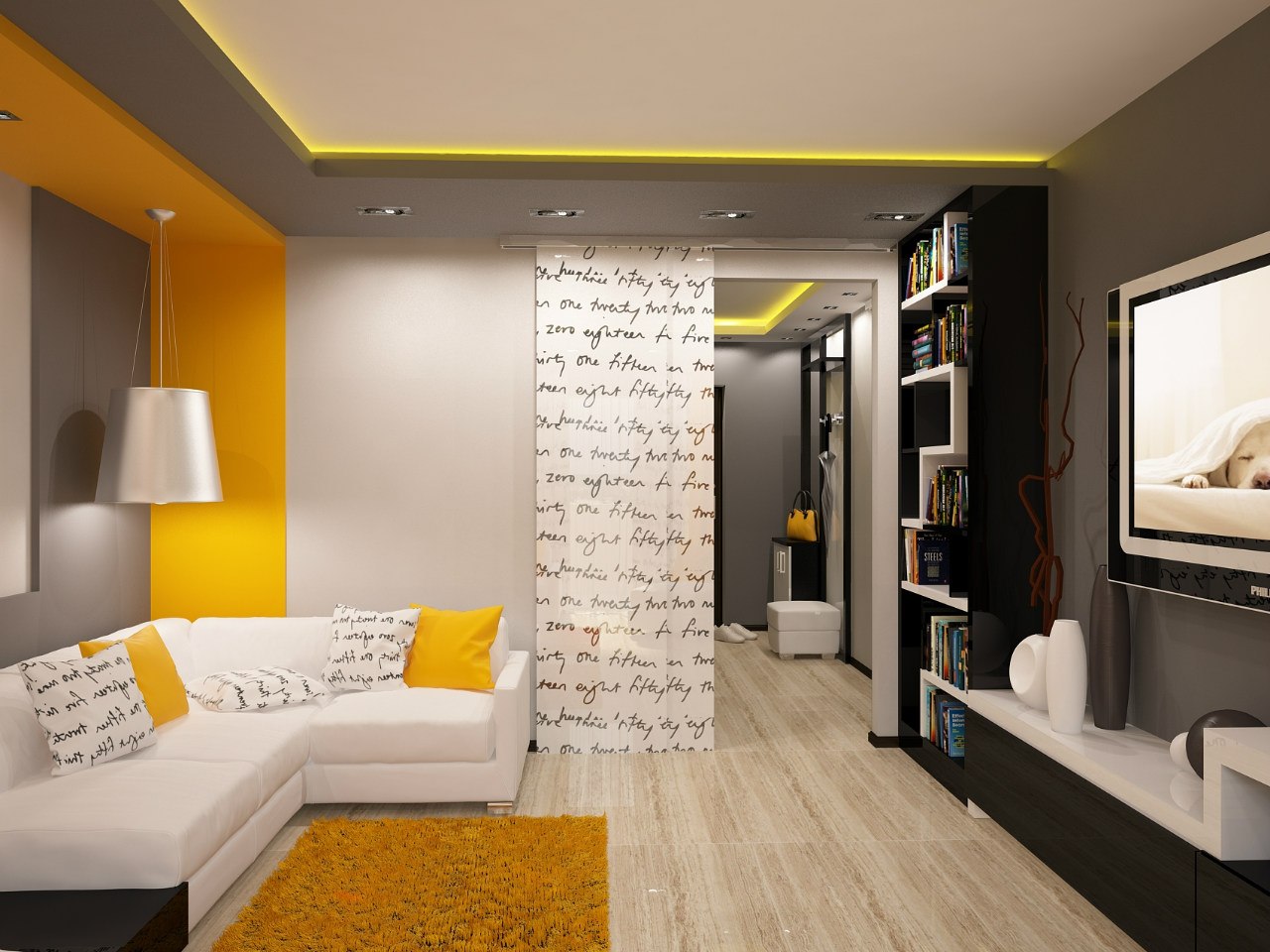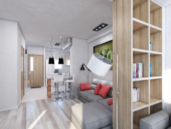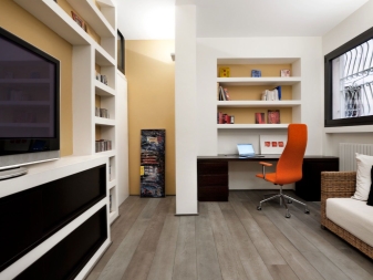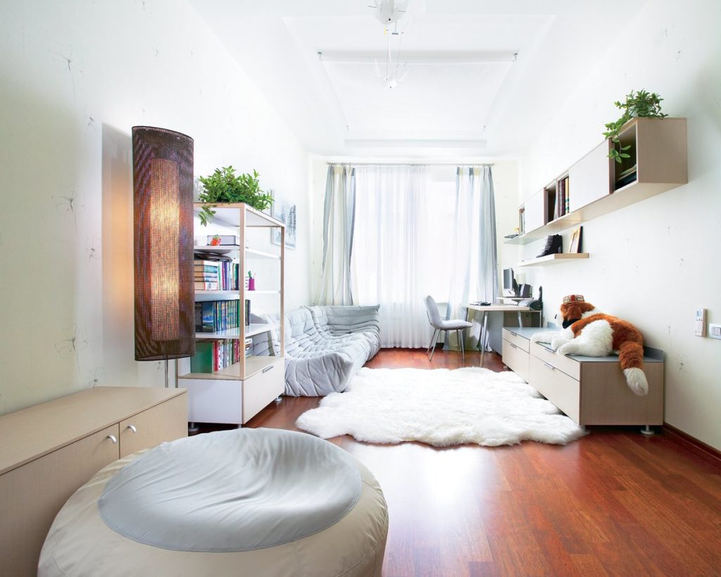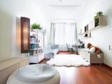 Sie können den Raum in Zonen unterteilen: einen separaten Ort zum Entspannen und Arbeiten im Wohnzimmer, zum Schlafen und Spielen im Kinderzimmer. Es ist möglich, Zonen durch ein Sofa, ein Gehäuse oder einen Bildschirm zu teilen.