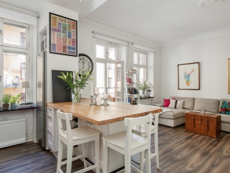 Manchmal reicht es für die übliche Reparatur, manchmal sind radikalere Maßnahmen erforderlich, zum Beispiel Sanierung. Das Wohnzimmer kann mit einem Balkon kombiniert werden und erweitert die Gesamtfläche des Raumes. Es besteht die Möglichkeit, das Wohnzimmer mit der Küche zu kombinieren. Die letztere Methode ist ziemlich populär, hat aber ihre Nachteile: die Dämpfe und das Fett vom Kochen können die Reparatur und die Möbel verderben.