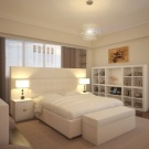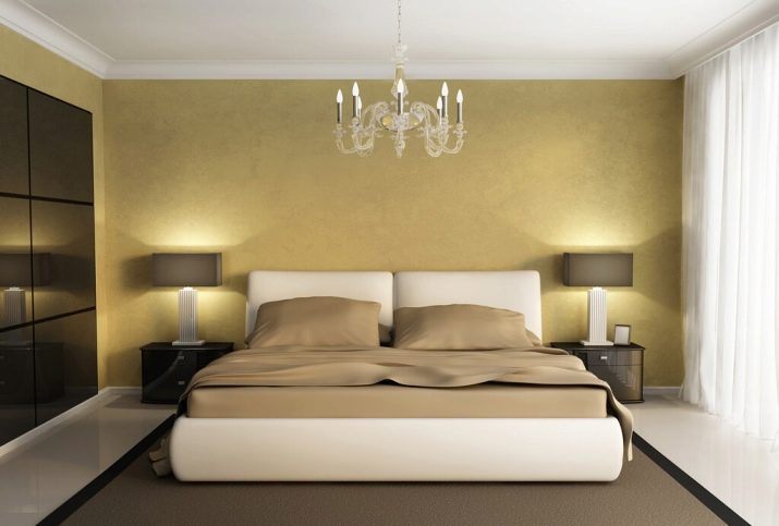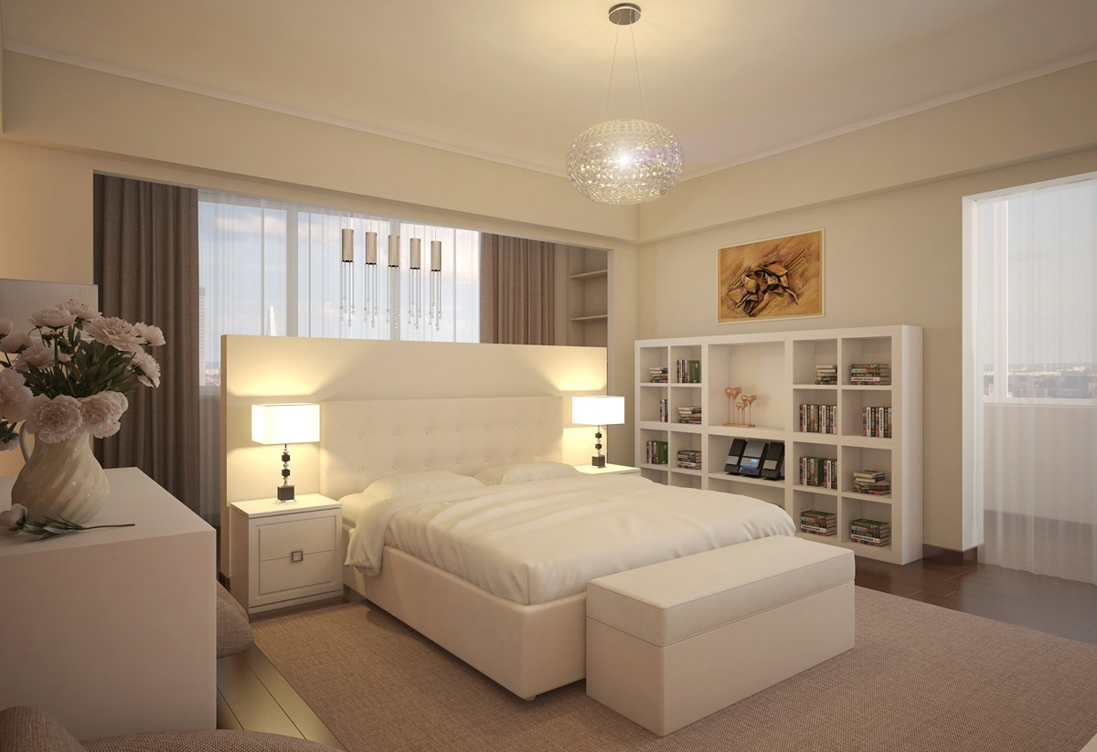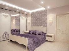 - Das Bett kann zum Symmetriezentrum werden. Der Rest der Möbel kann in gleicher Entfernung vonsie: Nachttische, Schränke, Wandlampen.