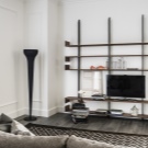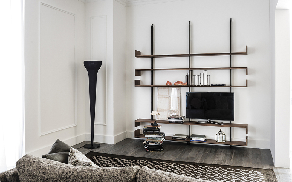 - Für den Standort von Büchern, Dekorelementen, Uhren und Figuren sieht ein ordentliches Regal harmonischer aus als ein paar Wandregale.