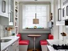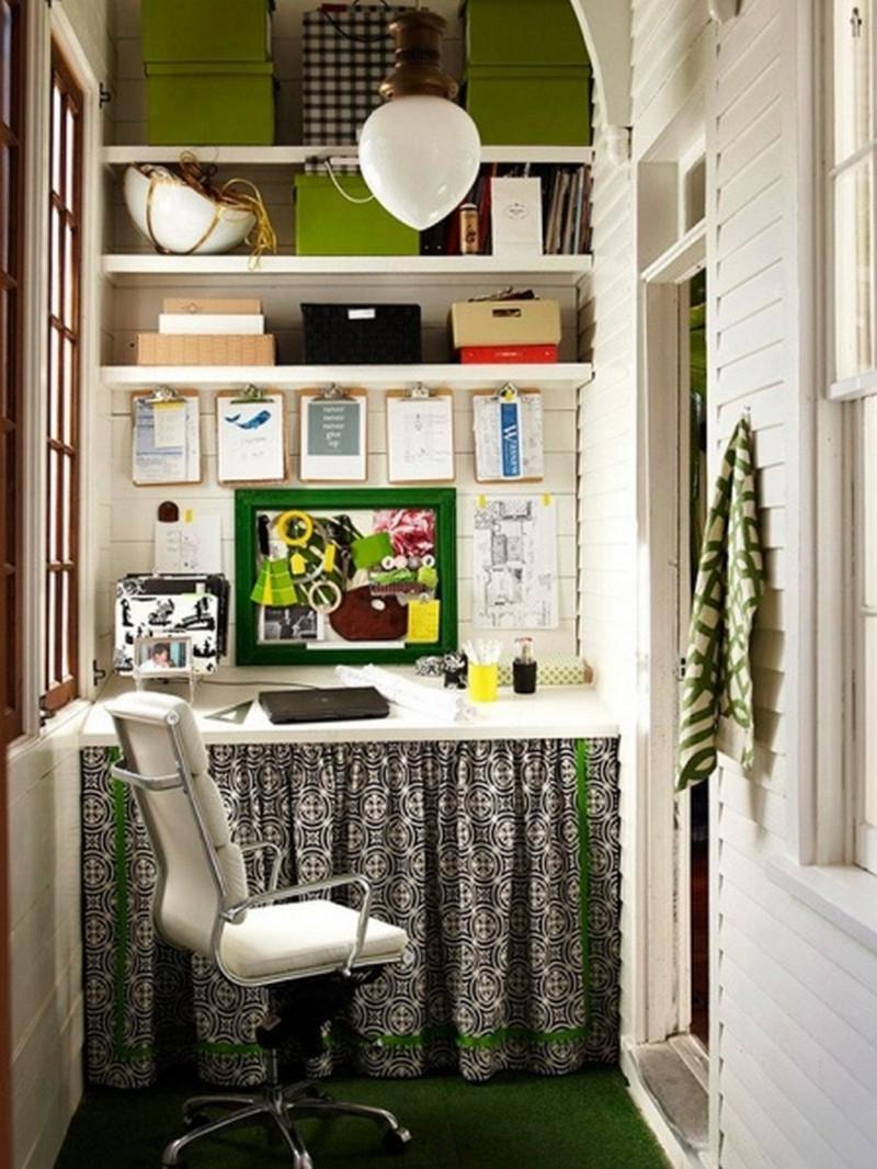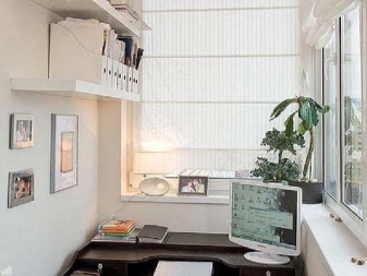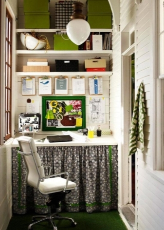 Wenn Sie einen kleinen Raum zur Verfügung haben, der aus einer Speisekammer oder einem Balkon stammt, dann müssen Sie die Möbel so kompakt wie möglich anordnen und eine ausreichende Beleuchtung für den Arbeitsbereich schaffen.