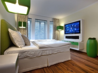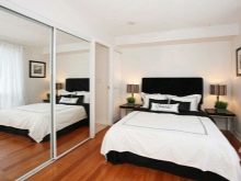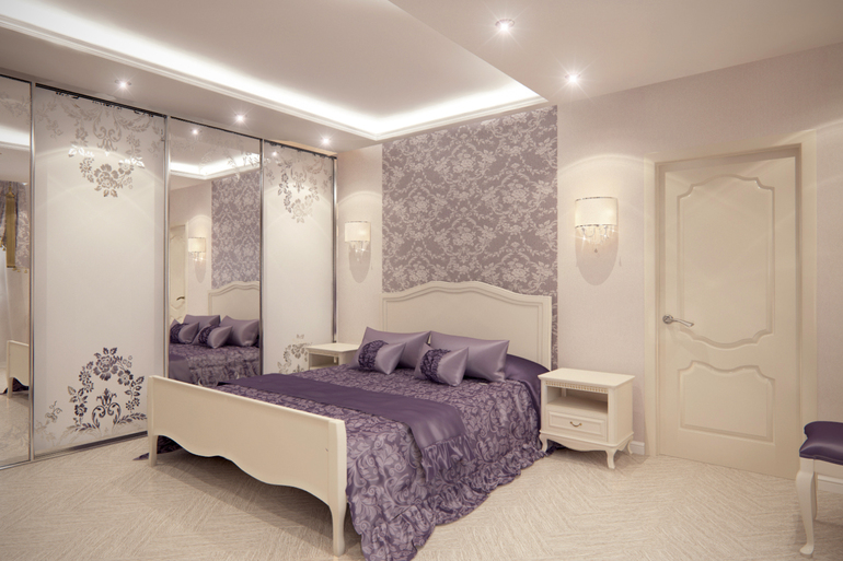 - Spiegel über dem Kopfteil oder an den Türen der Schränke erweitern den Raum und reflektieren das Licht der Lampen.