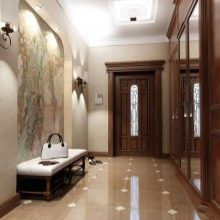 - Aufgrund der erhöhten Belastung im Eingangsbereich ist es besser, den Boden aus hochwertigen Materialien zu wählen.