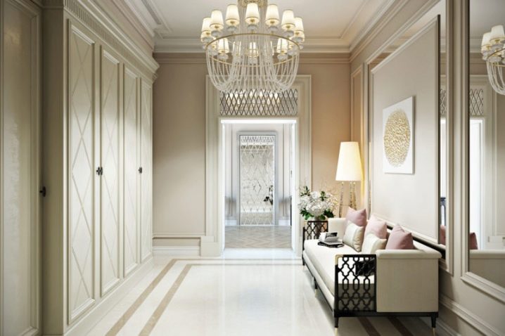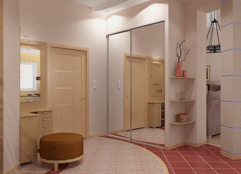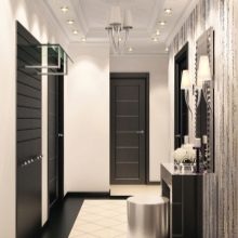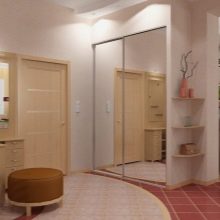 Dies ist der erste Raum, den jeder sieht, wenn er das Haus betritt. Es sollte stilvoll und funktional zugleich sein. Die Farben werden zu jedem passen: helle Neonfarben, Pastellwände und Holzböden, grafische Schwarz-Weiß-Interieurs oder Klassiker mit Goldtönen. Es ist wichtig, eine vollständige Komfortbeleuchtung zu bieten. Schiebeschränke statt schwingender sind für kleine Vorderzimmer geeignet. Weiche Puffs oder Hocker ermöglichen es Ihnen, Schuhe ohne Probleme zu tragen. Wenn es der Platz erlaubt, legen Sie ein Sofa oder eine Couch in den Flur.