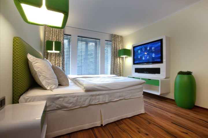 Modern - Eine gute Wahl für Fans aller ungewöhnlichen.Große Fenster, Buntglasfenster und abgerundete Linien machen das Zimmer etwas fabelhaft.