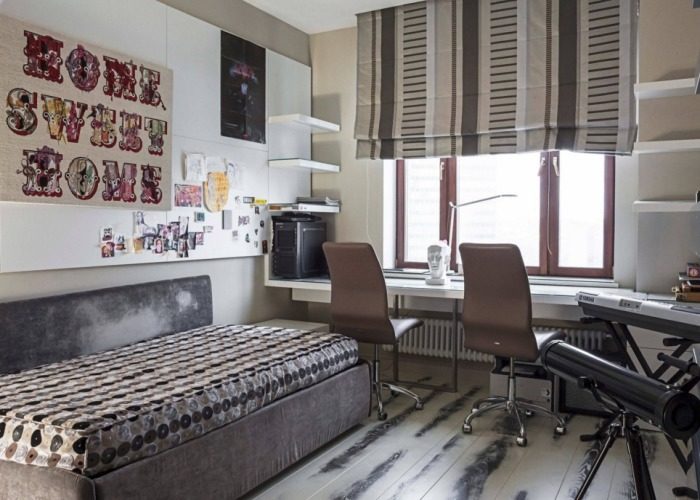 Kreative Personen müssen Musikinstrumente oder Staffeleien in den Raum stellen. Studenten benötigen einen funktionalen und komfortablen Schreibtisch zum Lernen. Für einen Spieler ist es wichtig, bequem einen Computer zu platzieren und einen bequemen orthopädischen Stuhl aufzuheben.