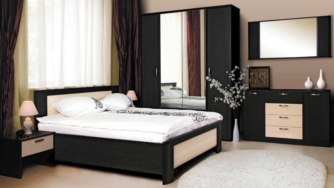 - Der Durchgang von der Tür zur gegenüberliegenden Wand muss frei sein. Es wird ordentlich aussehen und das Schlafzimmer optisch noch geräumiger machen, sogar mit einem kleinen Filmmaterial.