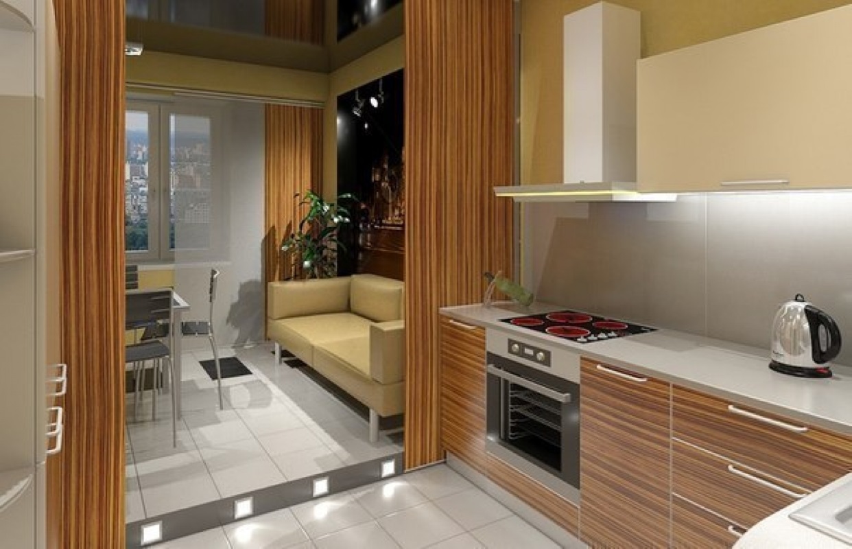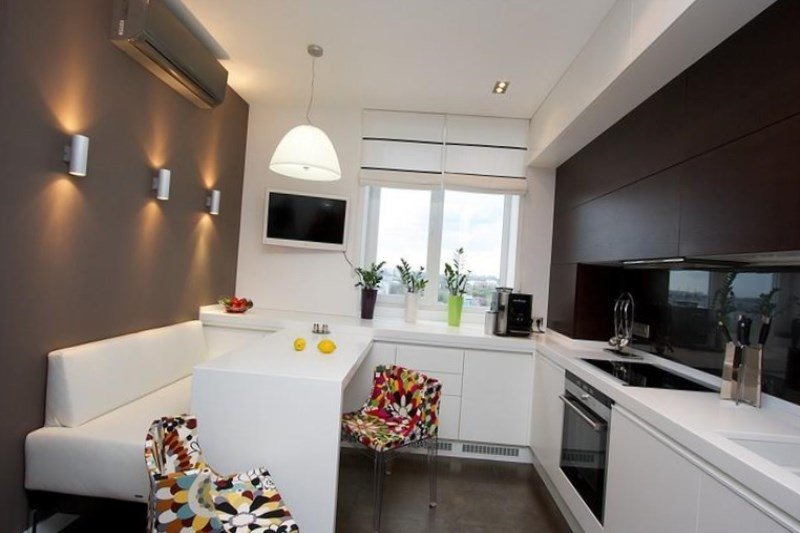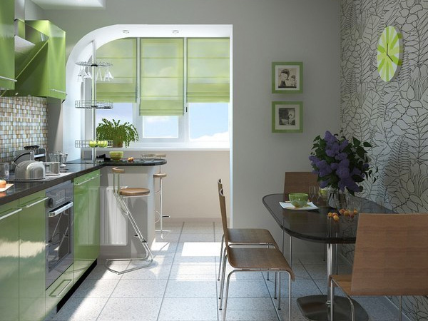 In kleinen Küchen kann die Trennwand zwischen dem Raum und dem Balkon als Theke genutzt werden.
