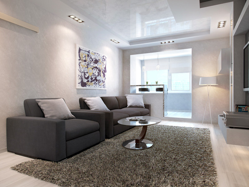 In Räumen mit einer kleinen Fläche ist es besser, einen Stil zu wählen. Hi-Tech oder Minimalismus. Eine kleine Menge an Möbeln und ihre funktionalen Eigenschaften sparen Platz und bieten maximalen Komfort.