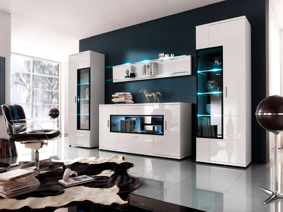 - Nischen, die mit LED-Band oder Einbauleuchten beleuchtet werden, füllen das fehlende natürliche Licht aus.