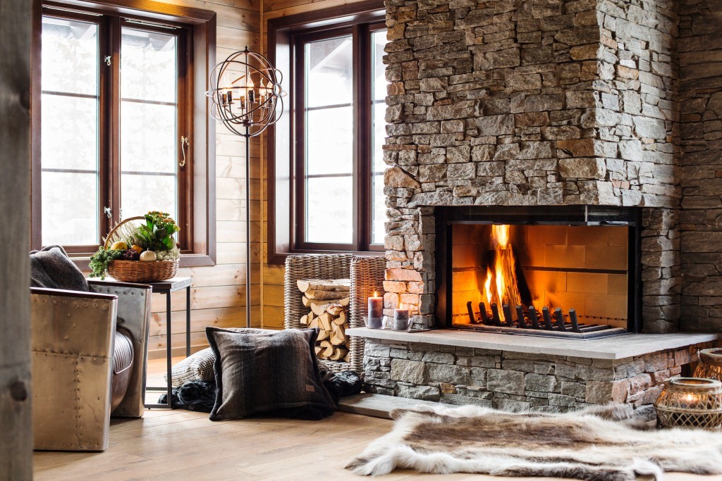 In einem Raum mit Nischen wird ein Kamin oder ein Ziegel- oder Mauerwerk gut aussehen.
