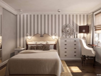 Um die fehlende Höhe zu kompensieren, wählen Sie eine Tapete mit einem vertikalen Muster. Die Decke selbst ist besser weiß zu machen. In einigen Fällen die Verwendung von abgehängten Decken.