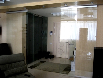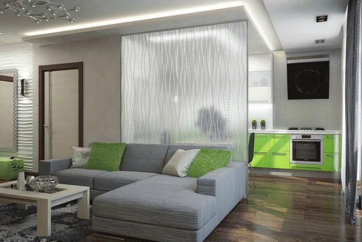 - Bei der Überarbeitung einer Wohnung sollte auf moderne Materialien geachtet werden, mit deren Hilfe transparente Türen, Trennwände und Möbel hergestellt werden. Solche Elemente sehen einfach aus und verstopfen den Raum nicht.