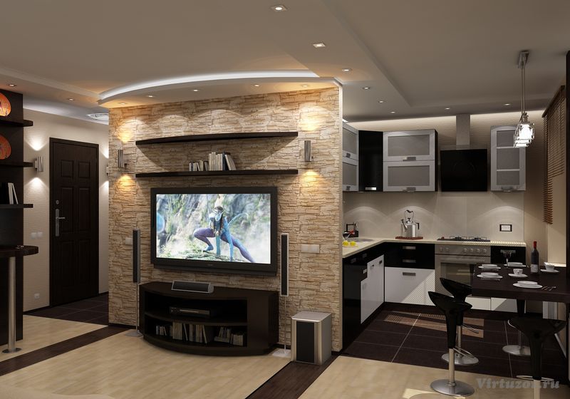 - Kombinieren Sie das Zimmer mit der Küche, vorausgesetzt die Wohnung ist ein Elektroherd.