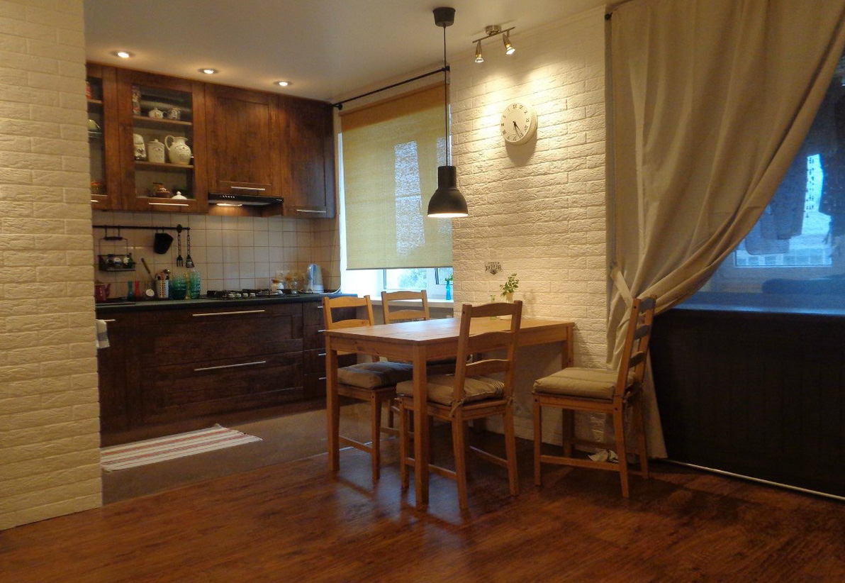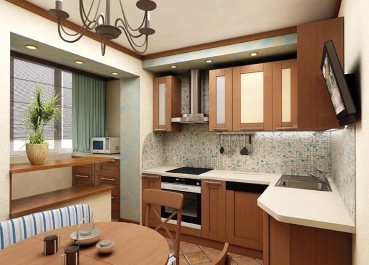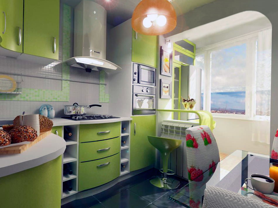 Erhöhen Sie den Komfort von kleinen Wohnungen des Typs Chruschtschow auch durch die Sanierung der Küche oder des Ganges. Der Balkon oder die Loggia neben der Küche wird als zusätzliche Quadratmeter genutzt,mit der richtigen Anordnung erlaubend, eine Vorratskammer für Essen dorthin zu stellen oder sogar einen Kühlschrank dorthin zu stellen, mehrere Schränke und Regale zu platzieren. Manchmal ist die Wand zwischen der Küche und dem Balkon komplett entfernt, was es möglich macht, ein paar begehrte Plätze in den kleinen Küchenraum zu setzen. Sie können das gleiche tun, wenn der Balkon neben dem Wohnzimmer liegt.