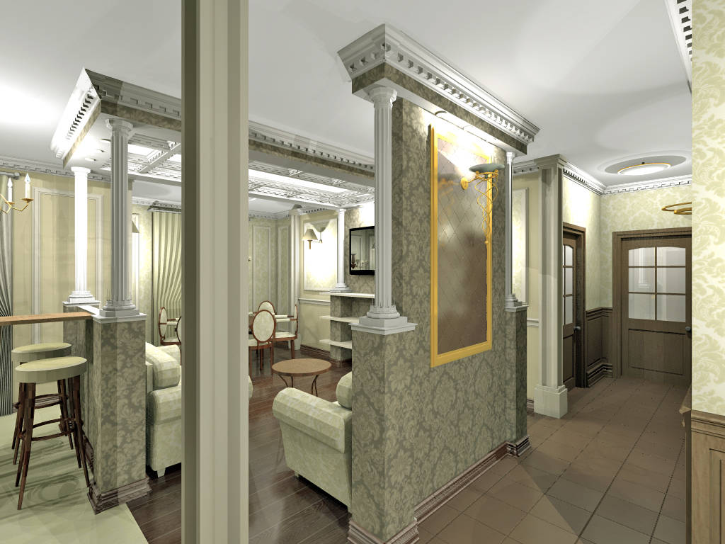 Manchmal wird das Problem durch einen Bildschirm, transparente Trennwände, einen Bartresen oder Möbel gelöst. Dadurch ist der Platz nicht überladen und Materialkosten können minimiert werden.