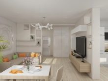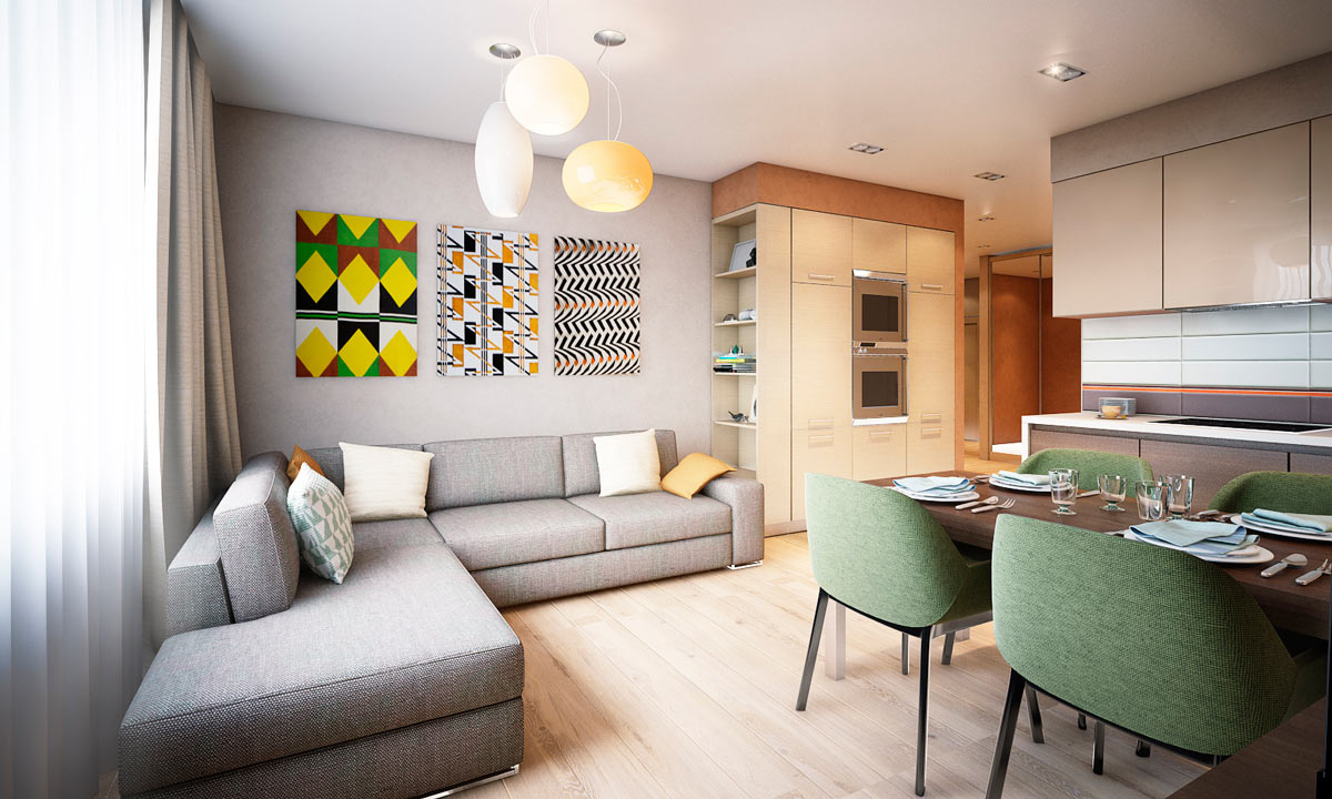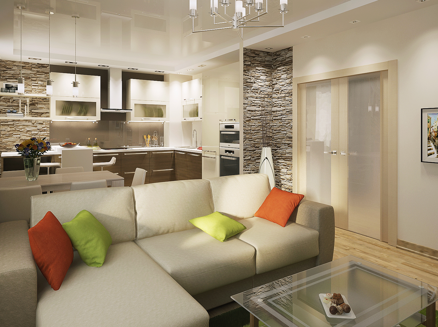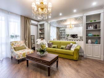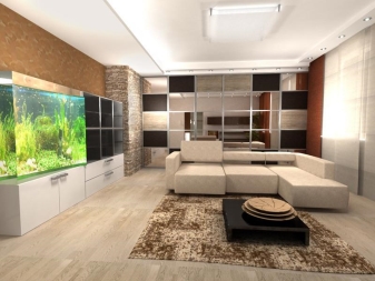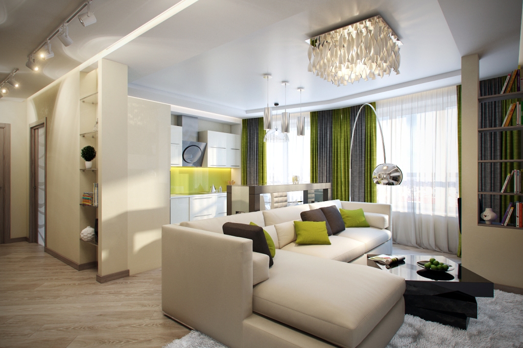 Dies verwendet oft mehrere Optionen. Einer von ihnen ist die Umwandlung eines Raumes in ein Studio, der andere ist eine teilweise Kombination von zwei benachbarten Räumen, zum Beispiel einem Wohnzimmer und einem Balkon. Bei einer grundlegenden Neugestaltung versuchen sie auch, alle Räume voneinander zu isolieren.