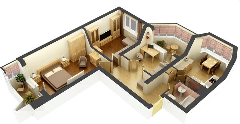In der modernen Stadt in der heutigen Zeit mit dem Bau neuer Nachbarschaften mit Wohnhäusern, erscheint eine große Vielfalt von Wohnungsgrundrissen. Am beliebtesten sind die drei Zimmer. Sie sind so konzipiert, dass sie sowohl in Paneelen als auch in repräsentativen Ziegelhäusern gebaut werden können.