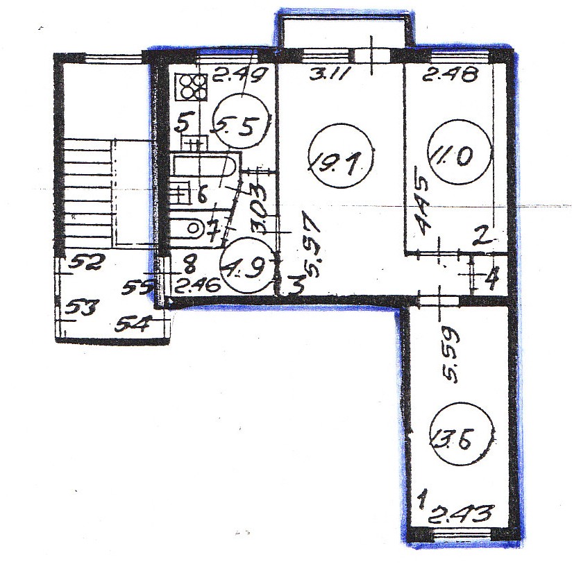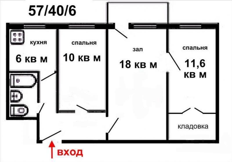 Solche Wohnungen in den fünfstöckigen Gebäuden von Chruschtschow werden oft eigenständig saniert. Der Grund dafür sind kleine Bereiche einzelner Wohn- und Nichtwohngebiete, Durchgangszimmer etc.