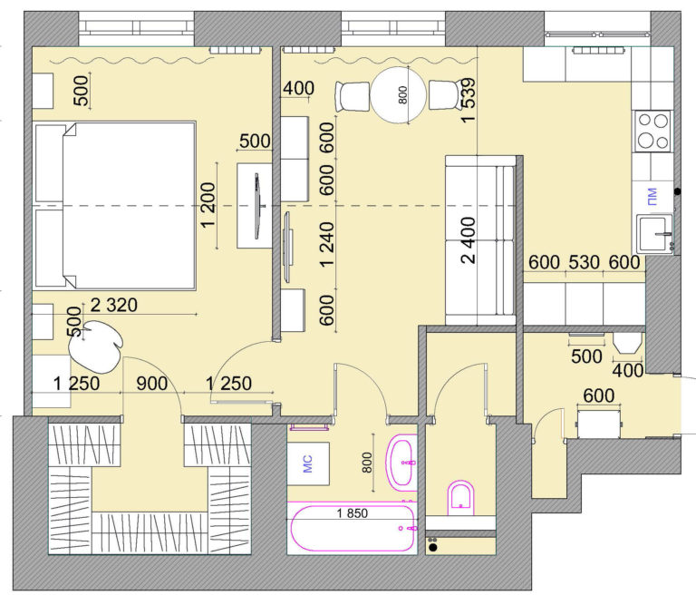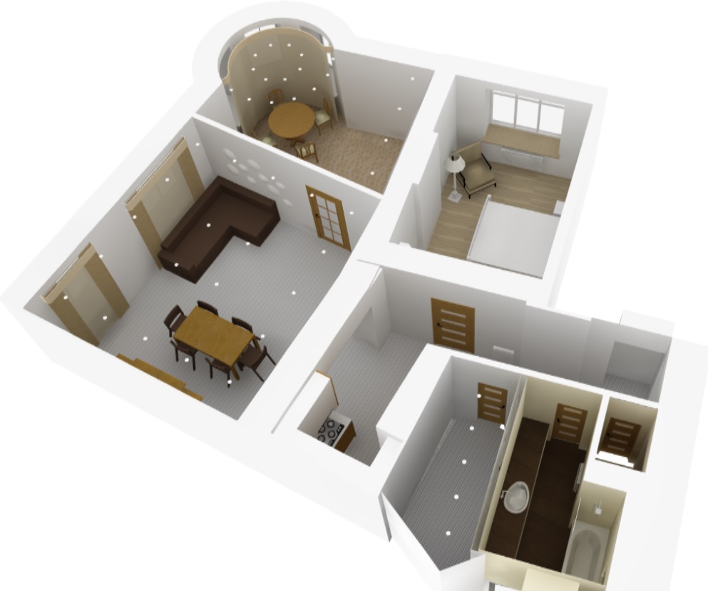 Mit diesem Plan wird es einfacher für Sie, sich das zukünftige Interieur vorzustellen, und Sie können Reparaturen selbst durchführen.