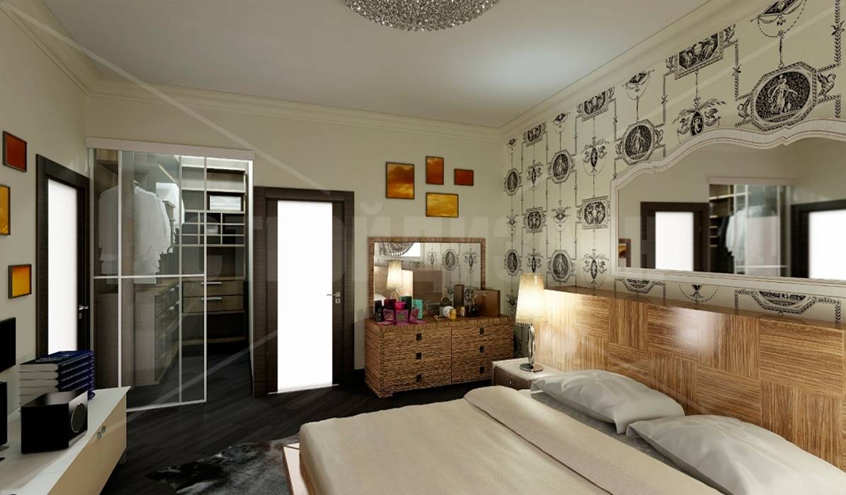 Alle Räume sind voneinander isoliert. Beim Betreten der Wohnung befinden wir uns sofort in einem langen und geraden Korridor. Zu seiner Linken sind drei Schlafzimmer. Die ersten beiden haben einen Balkon. Im dritten, geräumigeren Schlafzimmer befindet sich ein eigenes Ankleidezimmer.