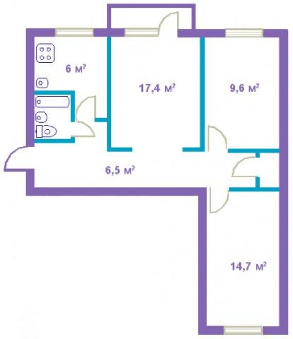 Drei-Zimmer-Gehäuse können auch eine Ecke haben. In diesem Fall wird einer der Räume zur Eingangshalle und wird normalerweise in ein Wohnzimmer umgewandelt. In diesem Fall sollte eine solche Wohnung oft saniert werden. Oft in neuen Häusern werden die Räume ohne Trennwände gemietet, zukünftigen Eigentümern werden geräumige Studios zur Verfügung gestellt, mit der anschließenden Planung solcher Wohnungen nach ihrem Ermessen.