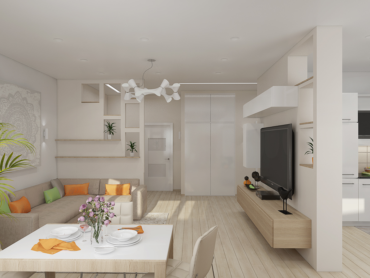 Die beste Option ist ein Studio mit einem freien Layout. Diese Nicht-Standard-Wohnung ermöglicht es Ihnen, Ihre eigene Designer-Fantasie zu zeigen und sich selbst die erfolgreichste Option für einen komfortablen Aufenthalt zu modellieren.