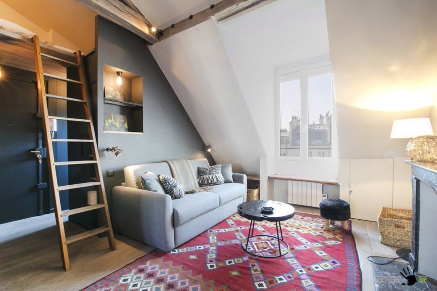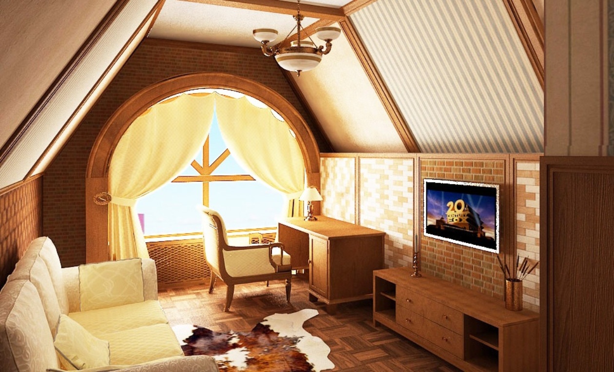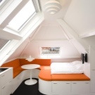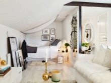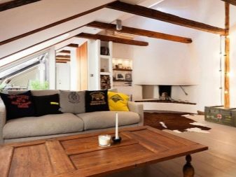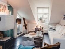 - Aufgrund der ungewöhnlichen Form der Dachgeschosswohnung ist es viel schwieriger zu erkennen - Sie können es nicht mit Standardmöbeln aus dem Laden einrichten. Hier müssen Sie entweder ein guter kreativer Designer sein, oder genug Geld haben, um ihn nach dem Kauf wieder einzustellen, oder Sie wählen sofort das fertige Gehäuse nach Ihren Wünschen.