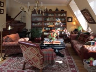 Aber die Klassiker gibt es sogar auf dem Dachboden. Viele Designer betonen die ungewöhnliche Lage von Wohnungen mit Hilfe von Deckenbalken und anderen charakteristischen alten Elementen. Hier werden die meisten Arten von Klassikern angemessen sein, einschließlich ethnischer Stile und rustikal.