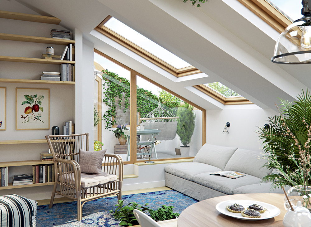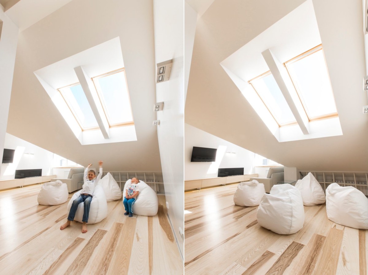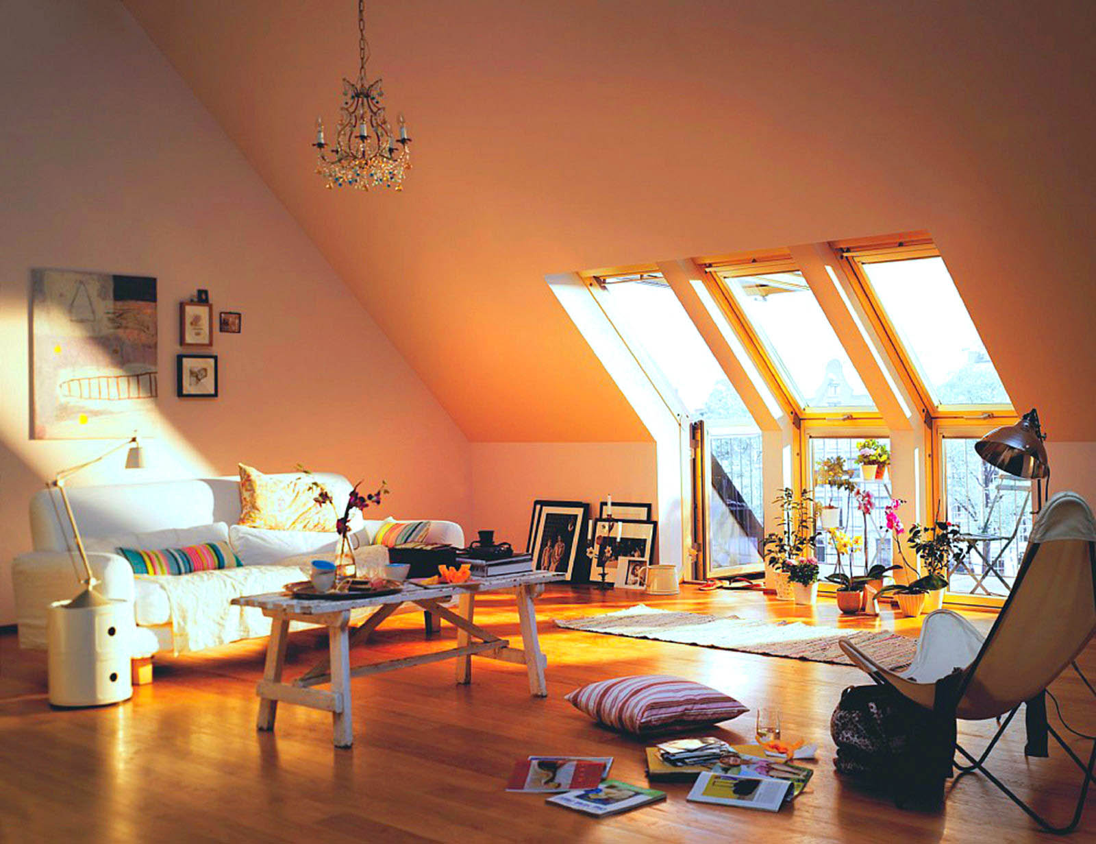 - Die Fenster auf dem Dachboden sind oft gekippt und manchmal komplett horizontal an der Decke, so dass Sie wirklich viel Sonnenlicht hereinlassen können. Neben der banalen Vitalität ist es auch eine Kostenersparnis, denn in einem solchen Raum und leichter und wärmer bedeutet dies, dass Sie weniger Strom verbrauchen können.