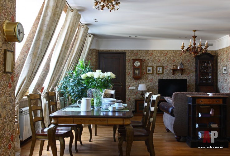 Dachboden - die Erfindung ist ziemlich alt, also sollte sie auf jeden Fall Berührungspunkte mit den Klassikern haben. Naturbelassenes Parkett, Holzfenster und Kronleuchter - all diese Elemente passen auch auf den Dachboden.