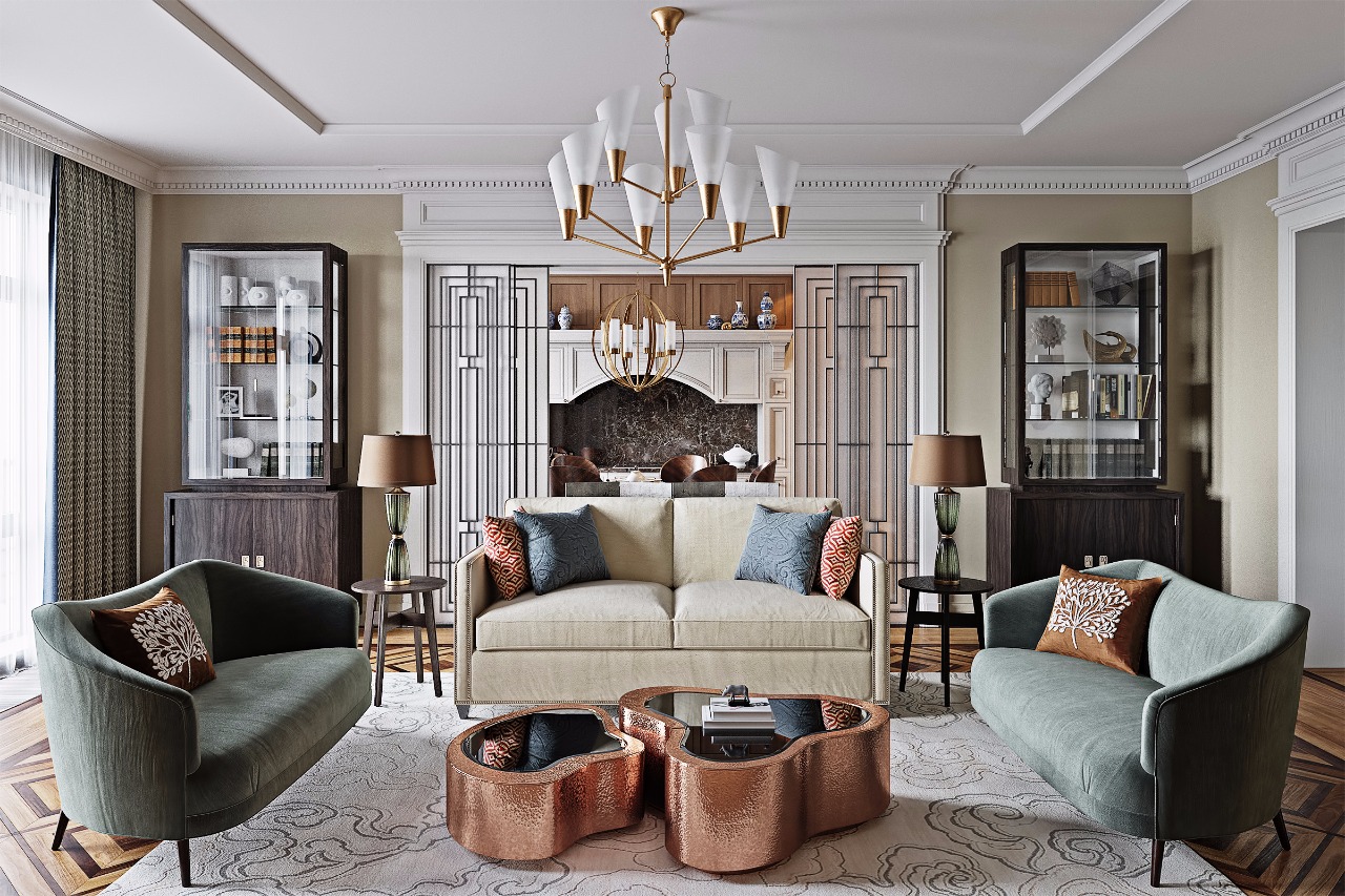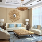 Eine Quintessenz des Luxus, die Bohème mit den Neuheiten des Fortschritts verbindet. Die grundlegenden Richtlinien des Stils sind mehrstufige Decken, das Vorhandensein von geometrischen Mustern, die Verwendung seltener Materialien (Krokodilhaut, Elfenbein, Tierhäute) und ungewöhnliche Formen (zum Beispiel Spiegel in Form einer strahlenden Sonne) im Design.