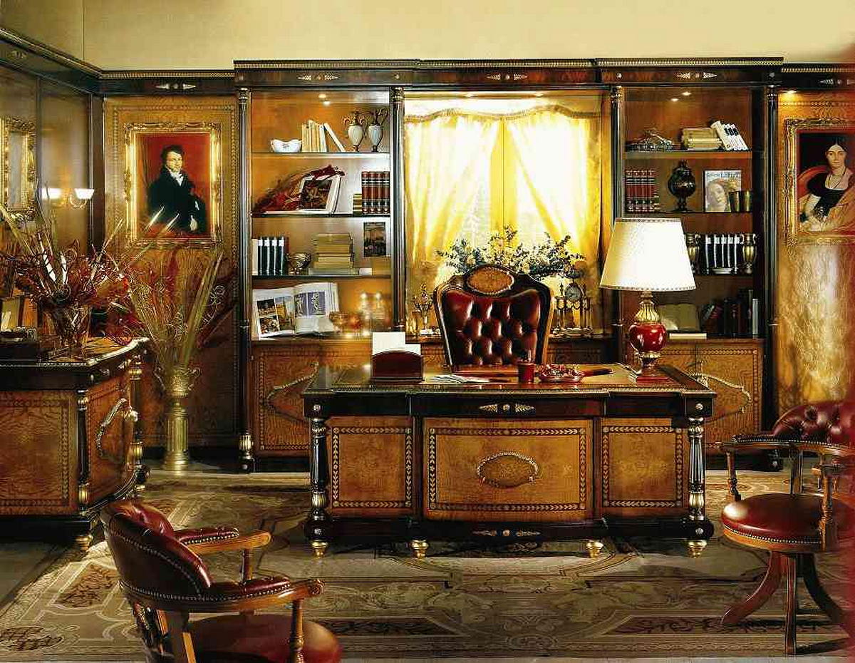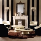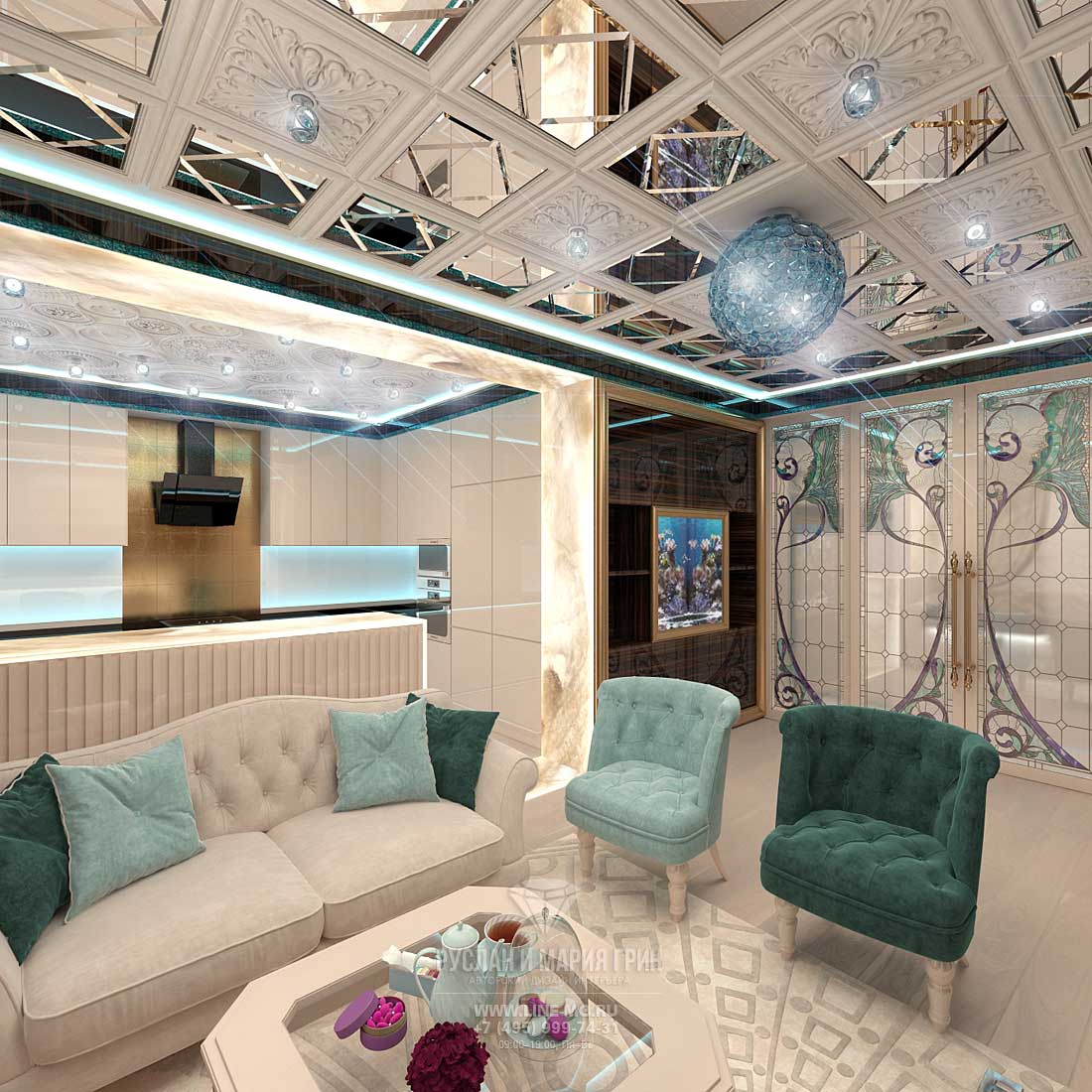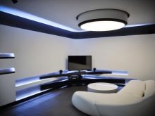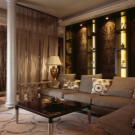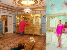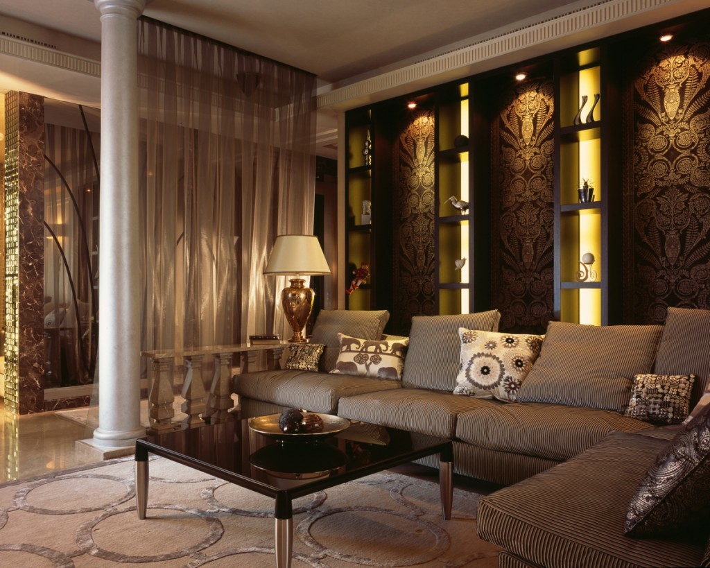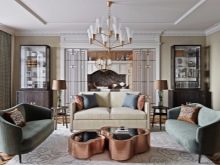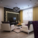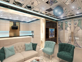 Es gibt eine Fülle von Licht, engagiert sich in der Dekoration von Oberflächen mit Glanz, Lackierung, die Verwendung von teuren Textilien und Kontraste von Farbtönen. View Zimmer betont das Club-Thema: In den Bodenbelag Keramikfliesen, Dielen verwenden, ist die Decke mit Vergoldung verziert, oft ist es dunkel.