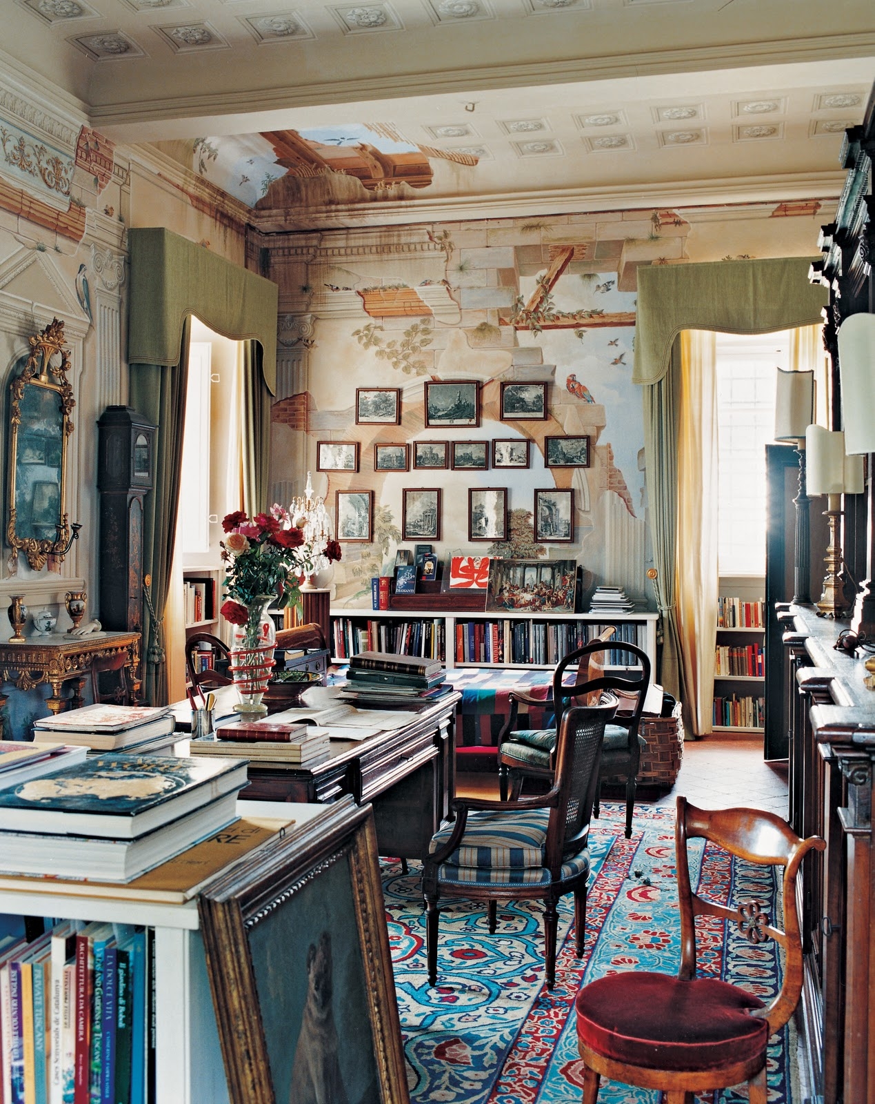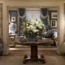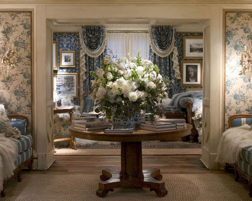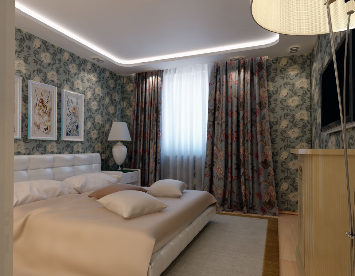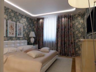 - es ist inakzeptabel, in der Wanddekoration mehr als zwei Muster von Drucken gleichzeitig zu verwenden, sie in den Vorhangstoffen wiederholend,Polsterung und Bettzeug (die maximal mögliche Kombination: geprägte Struktur und Druck oder einfache und gemusterte Bezüge);