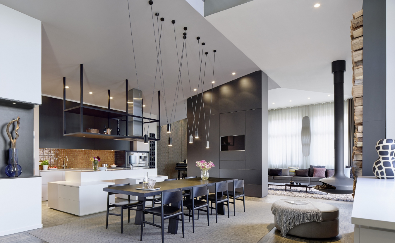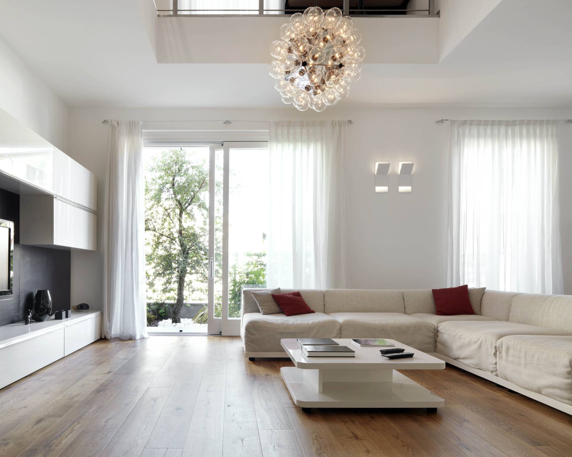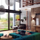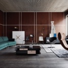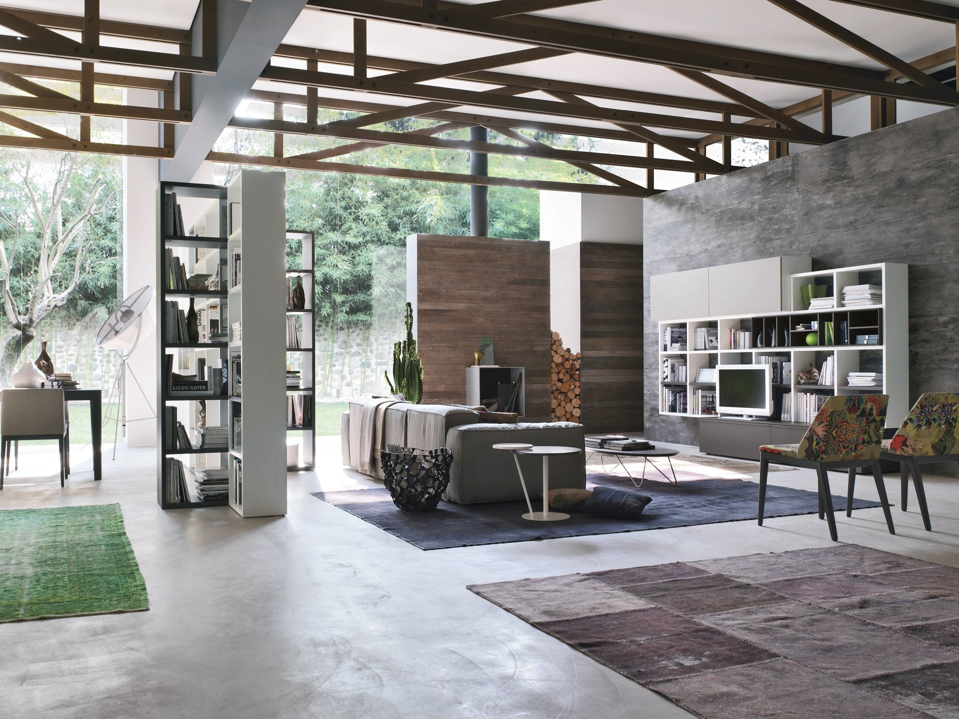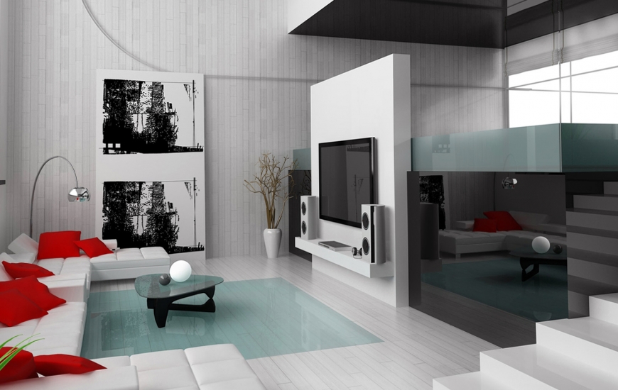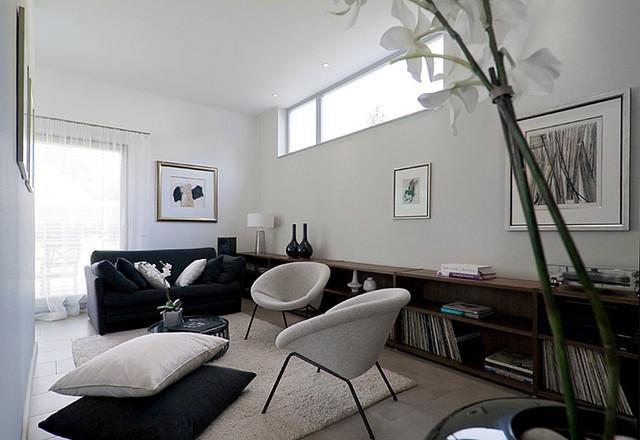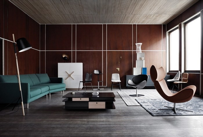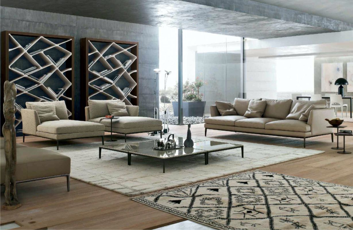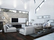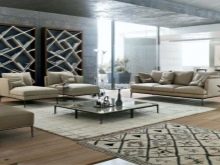 Modernes Wohnen zeichnet sich durch seine Funktionalität aus. Heute beherbergt es häufiger Gast-, Kamin- und Essbereiche und ist dadurch gemütlich und einladend. Das Schlüsselelement der Möbel ist eine Reihe von Polstermöbeln, einschließlich eines linearen oder Ecksofa,das, in Anwesenheit von Raum, modulare, gepolsterte Stühle oder Sofas und ein Kaffeetisch sein kann, der heute auch ein gepolsterter Schemel sein kann (zum Beispiel durchgeführt mit Lederpolsterung und Oberflächenrelief).