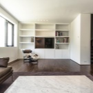 Dieser moderne Stil ist autark und demokratisch. Die Grundprinzipien der Stilistik sind konzentriert in Übereinstimmung mit Geometrie und Proportionalität. Anordnung der Räume sollte einfach sein, sie können Einbauschränke, eine Vielzahl von Regalen und Regalen, eine Art Bildschirm befinden.