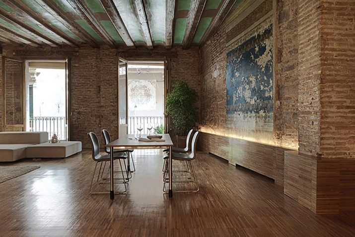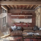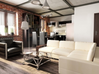 Zur gleichen Zeit im Stil teure Möbel gepolstert, die Verwendung von Spiegeln und teurer Ausrüstung, entsprechend den neuesten Entwicklungen des Fortschritts. Partitionen sind nicht charakteristisch für ein Loft: Es zeichnet sich durch eine offene Grundriss, hohe Decke, grob verputzte Wände, Mauerwerk, Beton.