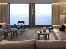 Dieses Design ist eine Kombination aus Reichtum und Einfachheit. Es gibt kein Pathos hier: Die Situation ist lakonisch, erfordert jedoch im ausgestatteten Raum ein Maximum an Platz und viel Sonne. Sie können die Wände mit einer Platte ummanteln, laminieren oder mit Mauerwerk oder Putz betonen.