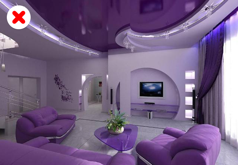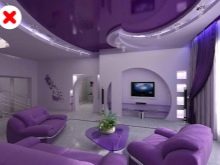 - Anwendung von Dekorationstechniken, die über das Wohlergehen von Hausbesitzern schreien oder einen völligen Mangel an Geschmack zeigen (saure und aggressive Töne der Situation, schwere und massive Einrichtungsgegenstände, Arroganz sind inakzeptabel);