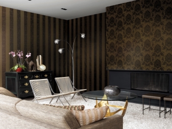 Es ist nicht wünschenswert, kleine Drucke (Erbsen, Käfige, Matten), Farben auf dem Hintergrund von quadratischen und rechteckigen Motiven, dreidimensionale Fototapeten mit einem Minimum an verfügbarem Platz zu verwenden. Im Vordergrund steht die Imitation von Dekorputz und die Verwendung von Tapeten mit Seidenprägung.