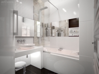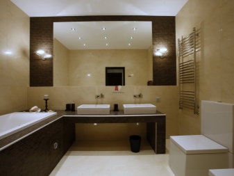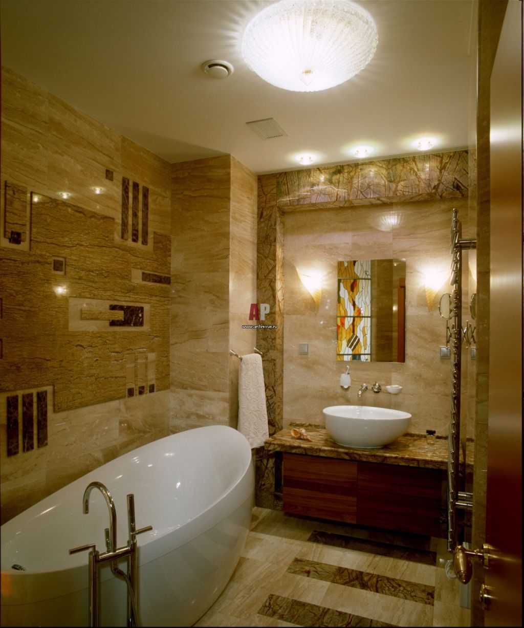 Die Möglichkeiten des Badezimmers hängen von der Form des Raumes ab. Bad kann ein Klassiker oder gebaut sein. Heute sind Ergonomie in Kombination mit Praktikabilität und Schönheit in natürlichen Farben der Palette, Wiederholung von Naturstein, Holz, Sand begrüßt.