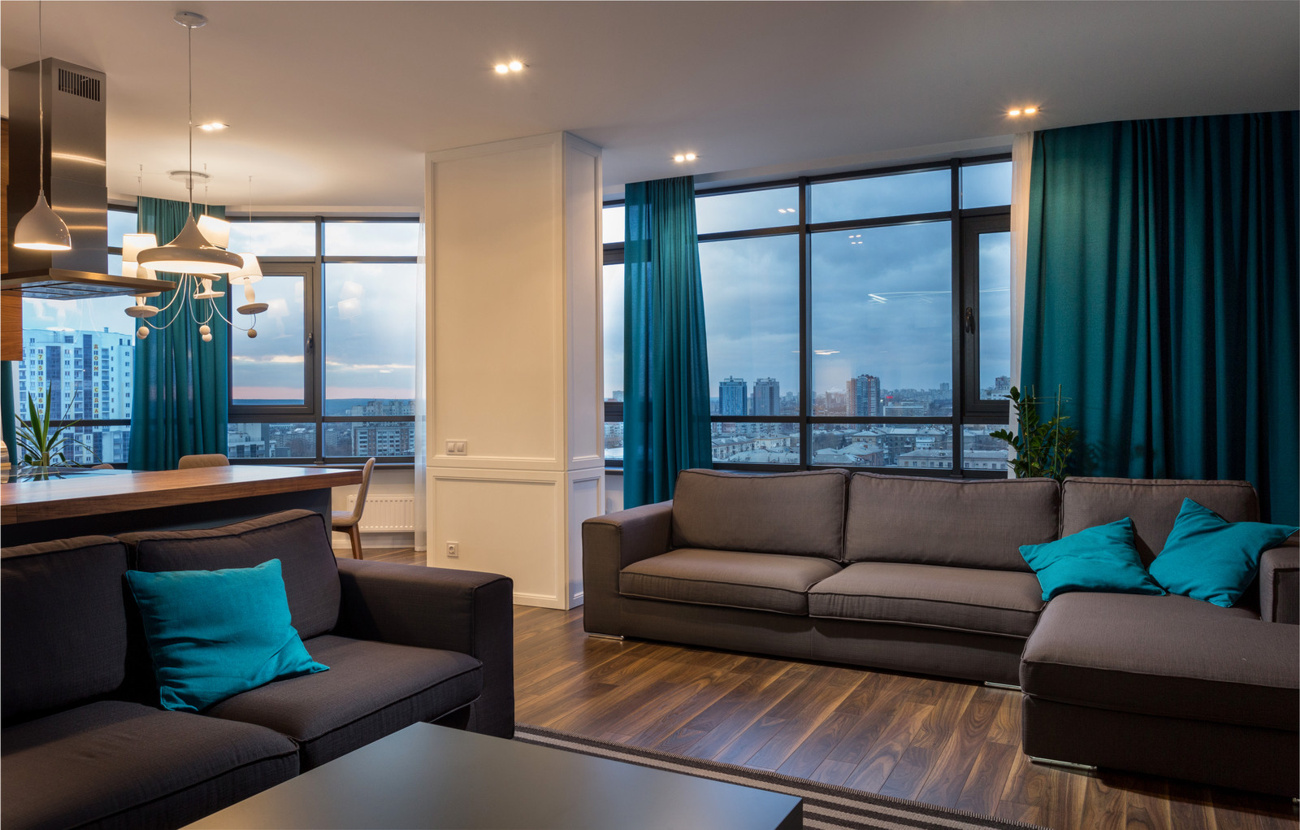 - dem Raum das maximal mögliche natürliche Licht zu geben, das für den visuellen Effekt von Geräumigkeit, positiver Stimmung und Augengesundheit notwendig ist;
