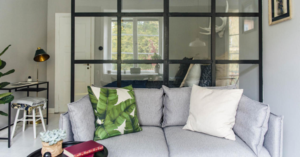- Nicht-Standard-Einrichtung von Möbeln verwenden, einzigartige Grenzen durch Regale, Armlehnen eines Sofas, Platzierung von Teppichen erfüllen;