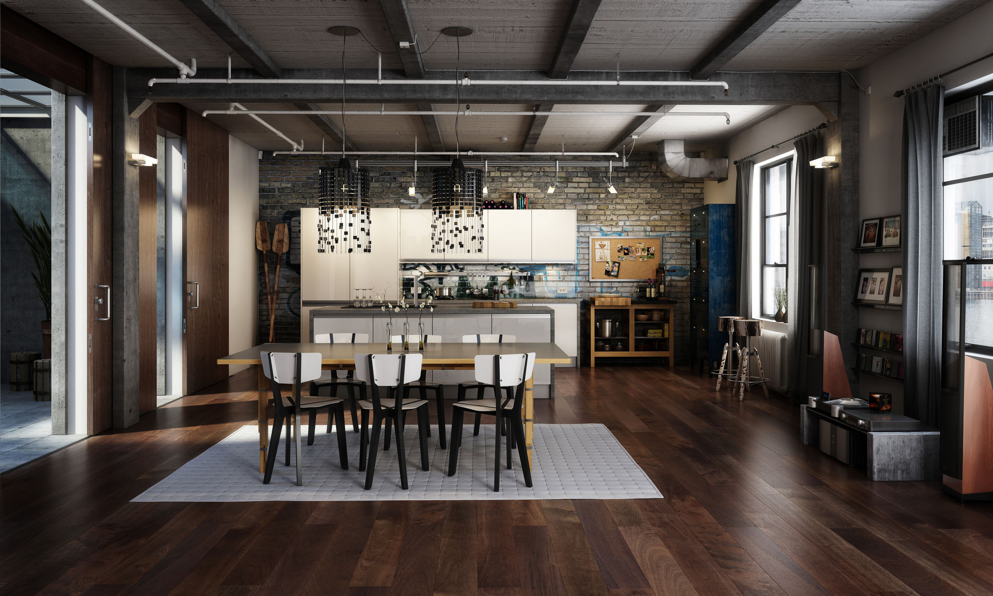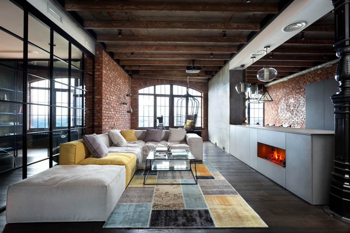 Einer der besten Designstile, der "Loft" in der Übersetzung bedeutet, hat Elemente einer verlassenen Industrieanlage (Werkstatt, Hangar, Garage) aufgenommen, die für Wohnzwecke angepasst ist. Es ist erfolgreich verbindet alt und neu: Die charakteristischen Merkmale des Stils sind Beton, Ziegelwände, Deckenbalken, Treppen, Kommunikationselemente, Panoramafenster, keine Vorhänge.