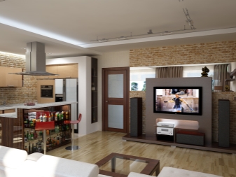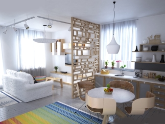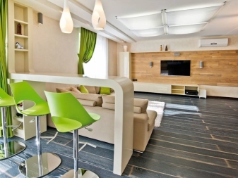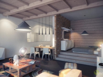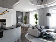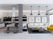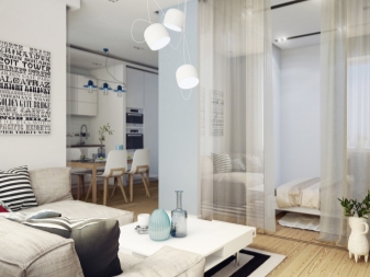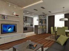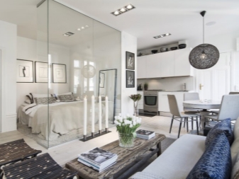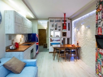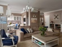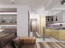 Studio Apartments sind ein Einzelzimmer, wo die Funktionalität von zwei oder mehr Zimmern verbunden ist. In modernen Gebäuden, meist im Wohnungsbestand, befinden sich Wohnungen dieser Probe. Aber viele in den Wohnungen von alten Layouts neigen dazu, ein Studio zu schaffen, innere Partitionen ganz oder teilweise entfernend, sie in Form von Nischen lassend.