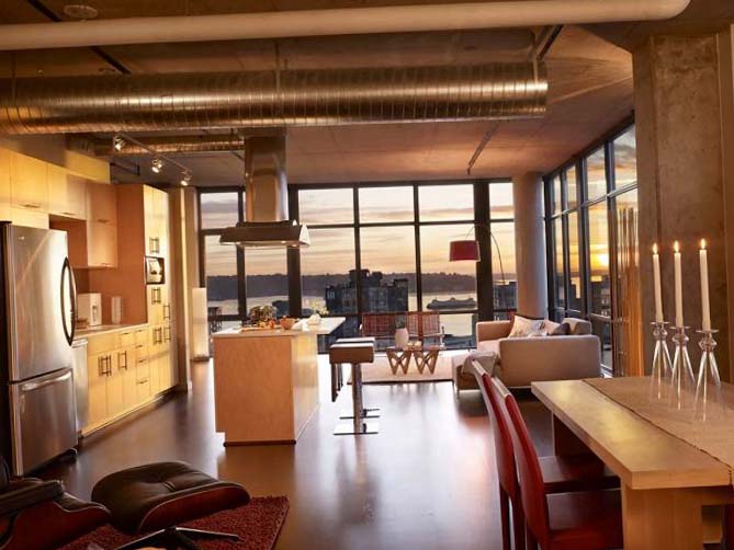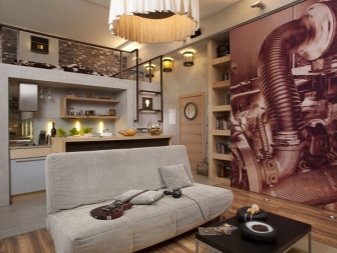 Es wird oft verwendet, um die Wohnung dieses Plans zu entwerfen. Dies ist ein moderner Stil, der auf der Grundlage der Trends der amerikanischen 50er Jahre geschaffen wurde, die sich durch einen großen Aufschwung der Industrie auszeichneten. Manche nennen es den Fabrikstil. Es gibt einige helle Schattierungen, Vorteil ist Grau, Ziegel, Schwarztöne. Materialien wie Metall, Stein, Holz, sind hier durchaus angemessen.