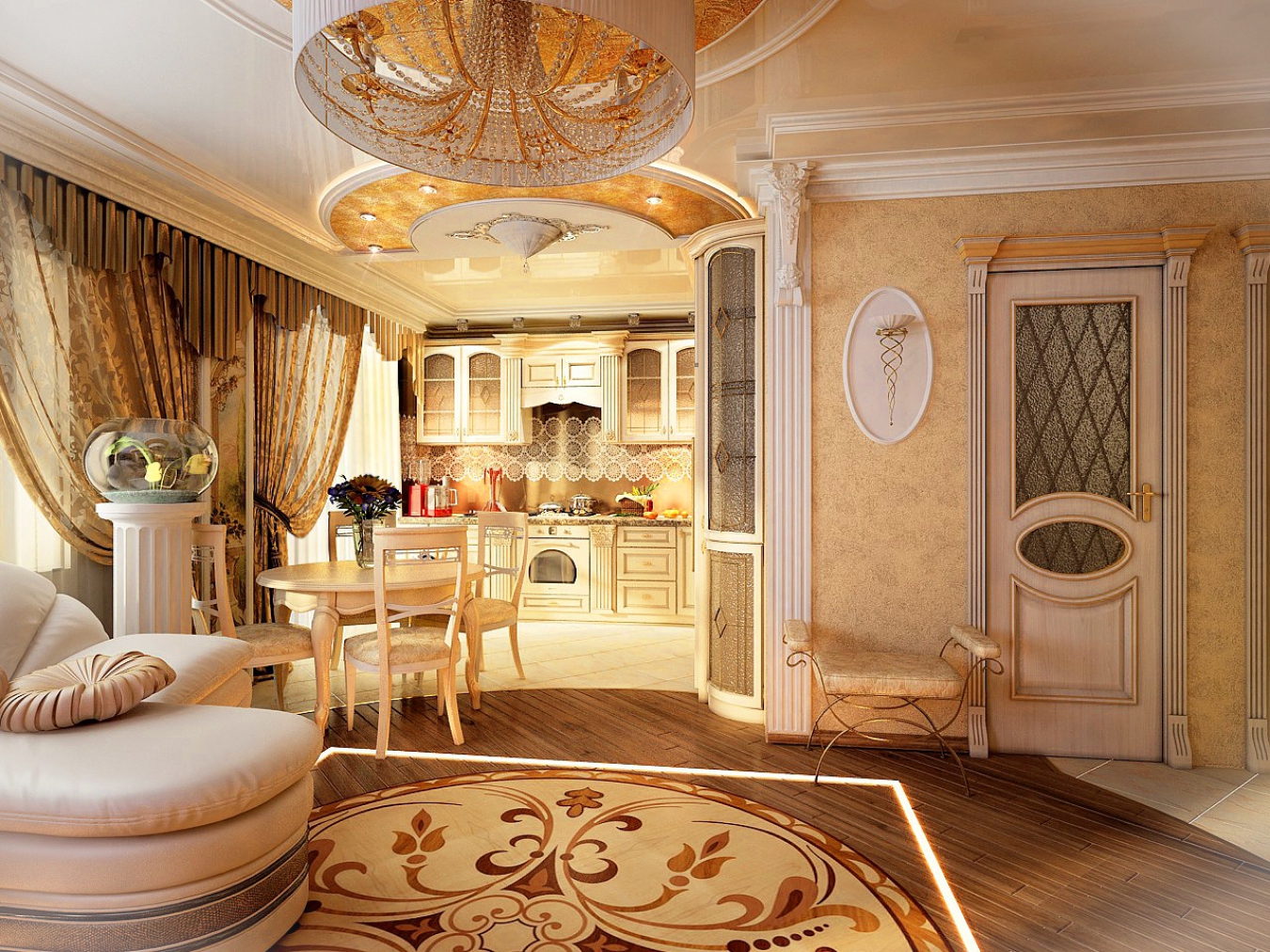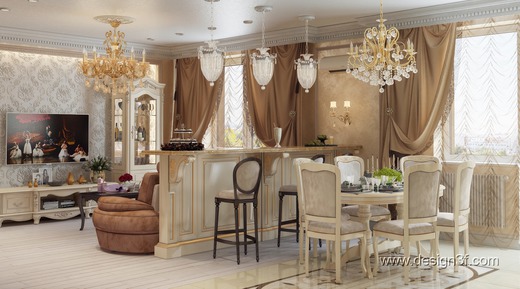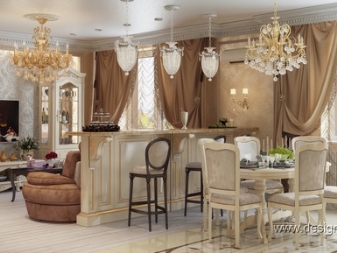 Dieser Stil zeichnet sich durch Größe, Monumentalität und Strenge aus. Monogramme, Vergoldungen, Stuck - all diese Elemente sind ein integraler Bestandteil des Empire-Stils. Es erfordert keine zusätzlichen Akzente, wie an sich schon ziemlich schlau ist.