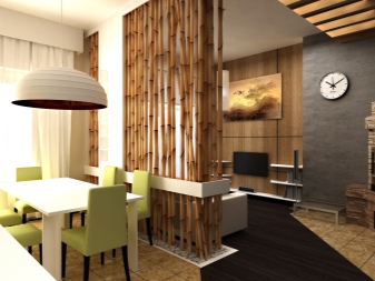 Dieses Studio-Apartment ist mit natürlichen Materialien eingerichtet. Holz, Baumwolle, Flachs, Seide wird hier durchaus angemessen sein. Farben im Finish sollten neutral sein. Beige, grün, braune Schuppen sind in dieser stilistischen Entscheidung am besten geeignet.