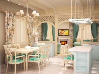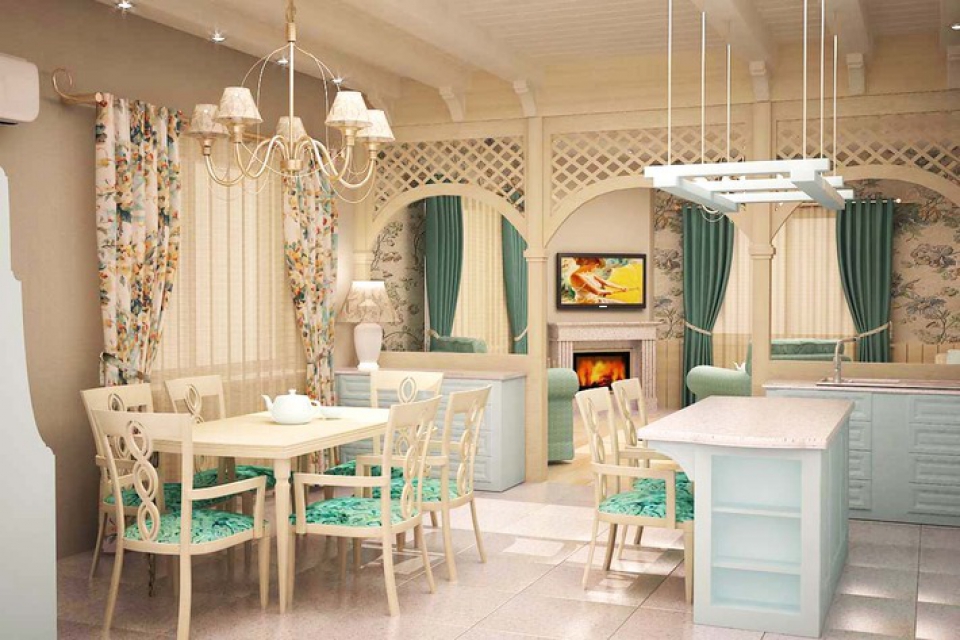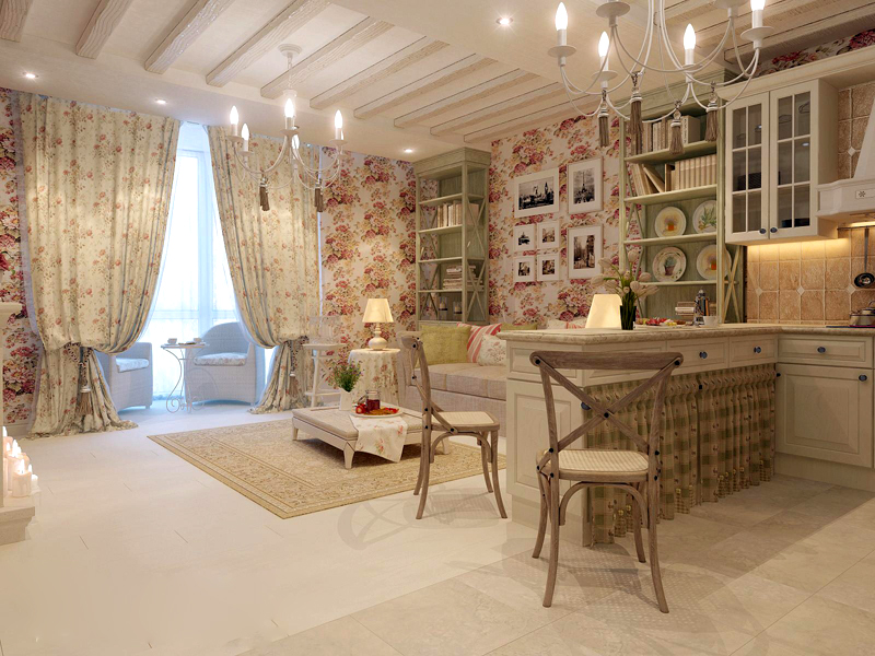 In diesem Stil erhalten Sie auch ein sehr originelles Studio. Es ist voller Romantik und Frische. Helle Farben an Wänden und Boden, florale Ornamente auf Textilien - das sind die Hauptmerkmale dieser stilistischen Entscheidung.