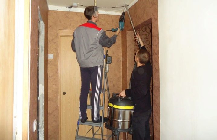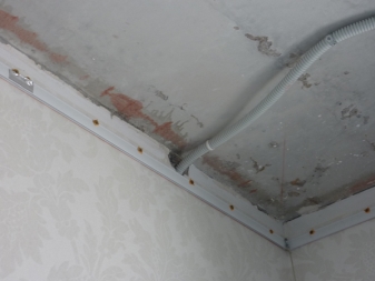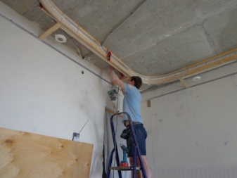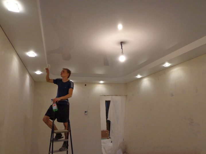 Wenn die Decke auf mehreren Ebenen geplant wurde, sollten alle Arbeiten mit Trockenbau im Voraus durchgeführt werden.. Zuerst wird das alte Finish entfernt, die Decke wird gut beschnitten, sonst krümmen sich in der Zukunft Schutt auf dem Stretch-Canvas. Dann kommt die Behandlung von Pilzflecken (falls vorhanden). Vor dem Einbau der Decke müssen alle Arbeiten mit der Verkabelung abgeschlossen sein.